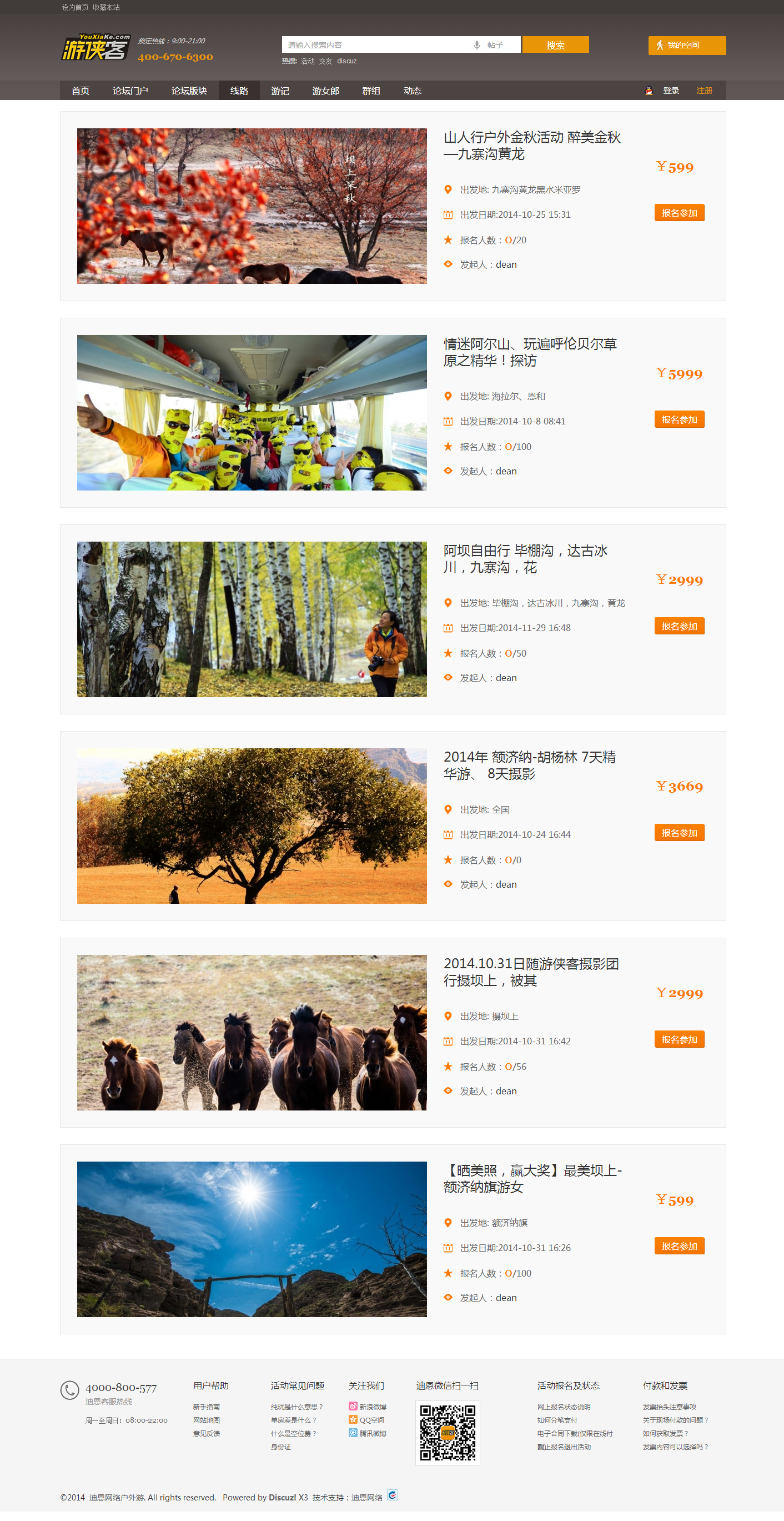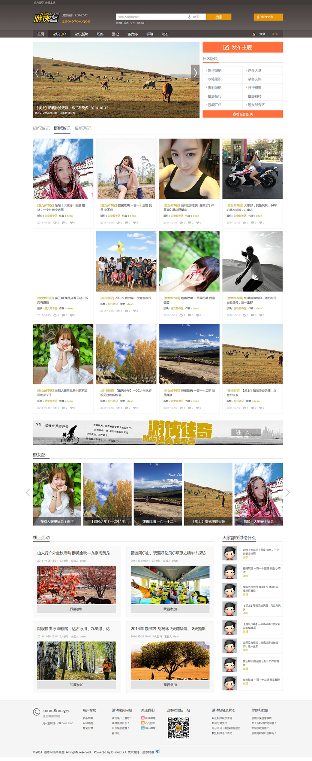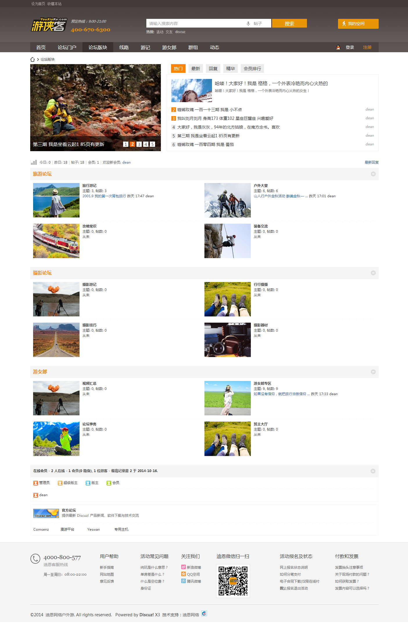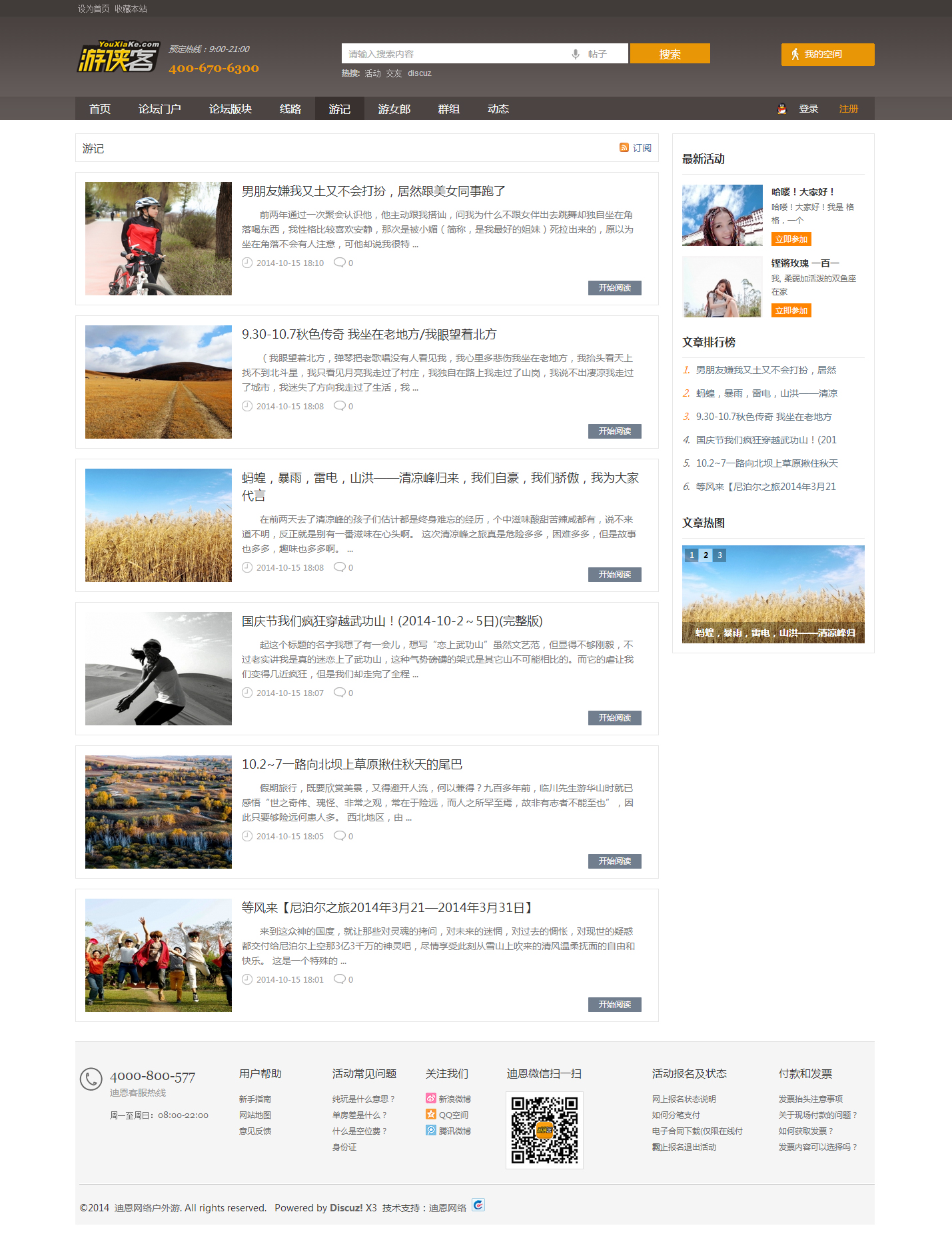 1..模板名稱(chēng):"旅游風(fēng)格-戶外游(HWY)風(fēng)格",版本支持:discuzx3.0版本,discuzx3.1版本,discuzx3.2版本,包括門(mén)戶首頁(yè),論壇門(mén)戶,論壇版塊,論壇列表頁(yè),論壇內(nèi)容頁(yè),線路頁(yè)面以及游記列表頁(yè),游記內(nèi)容頁(yè)。