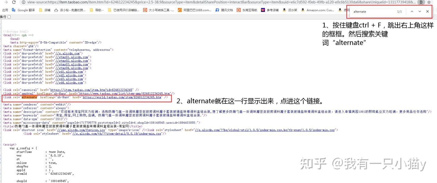 第三步:分小兩步走,1、按住鍵盤上的ctrl + F,進(jìn)入搜索框,然后再搜索框搜索關(guān)鍵詞“alternate”;按一下鍵盤上的enter鍵,就會跳到帶有“alternate”這一行“橙色部分”,然后我們再點進(jìn)帶有“alternate”這一行的鏈接。如下圖-2所示: